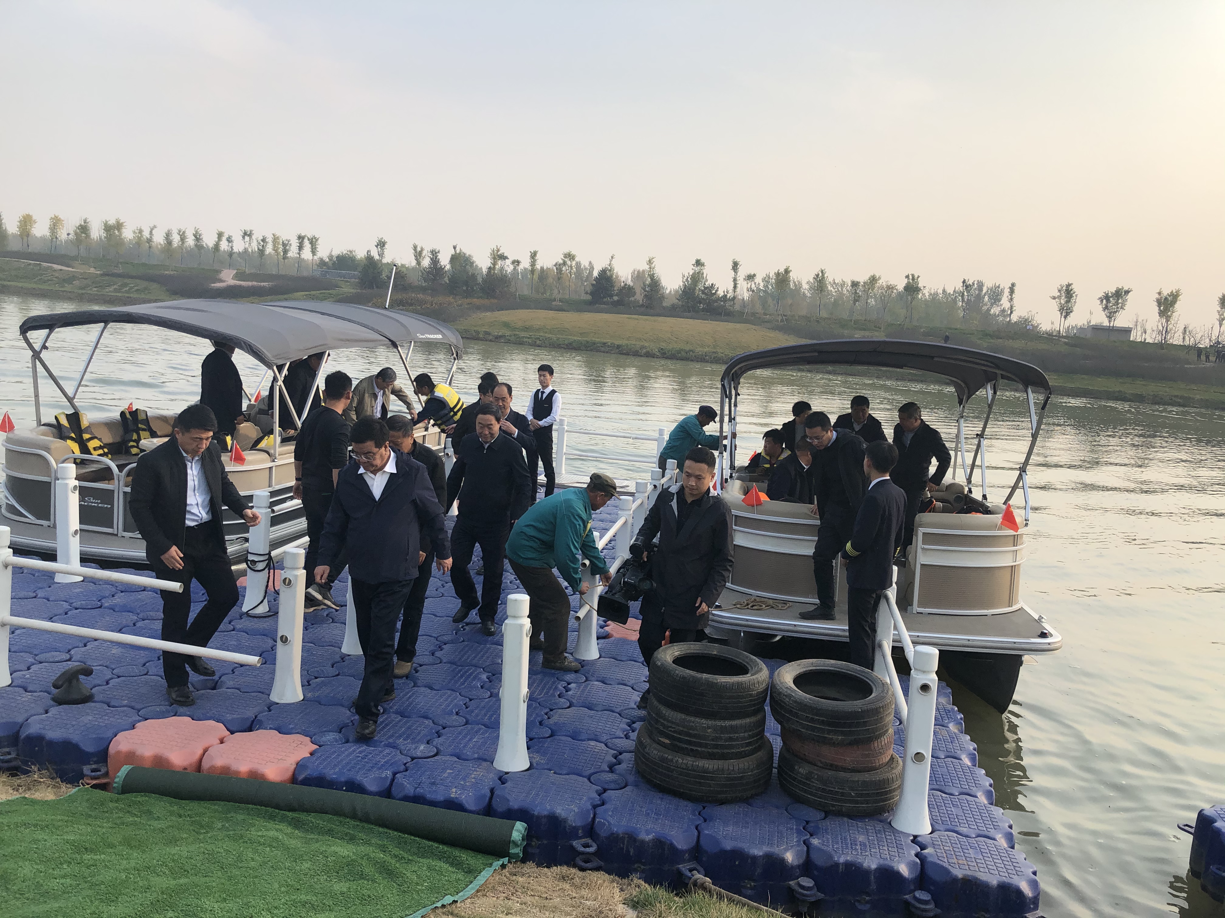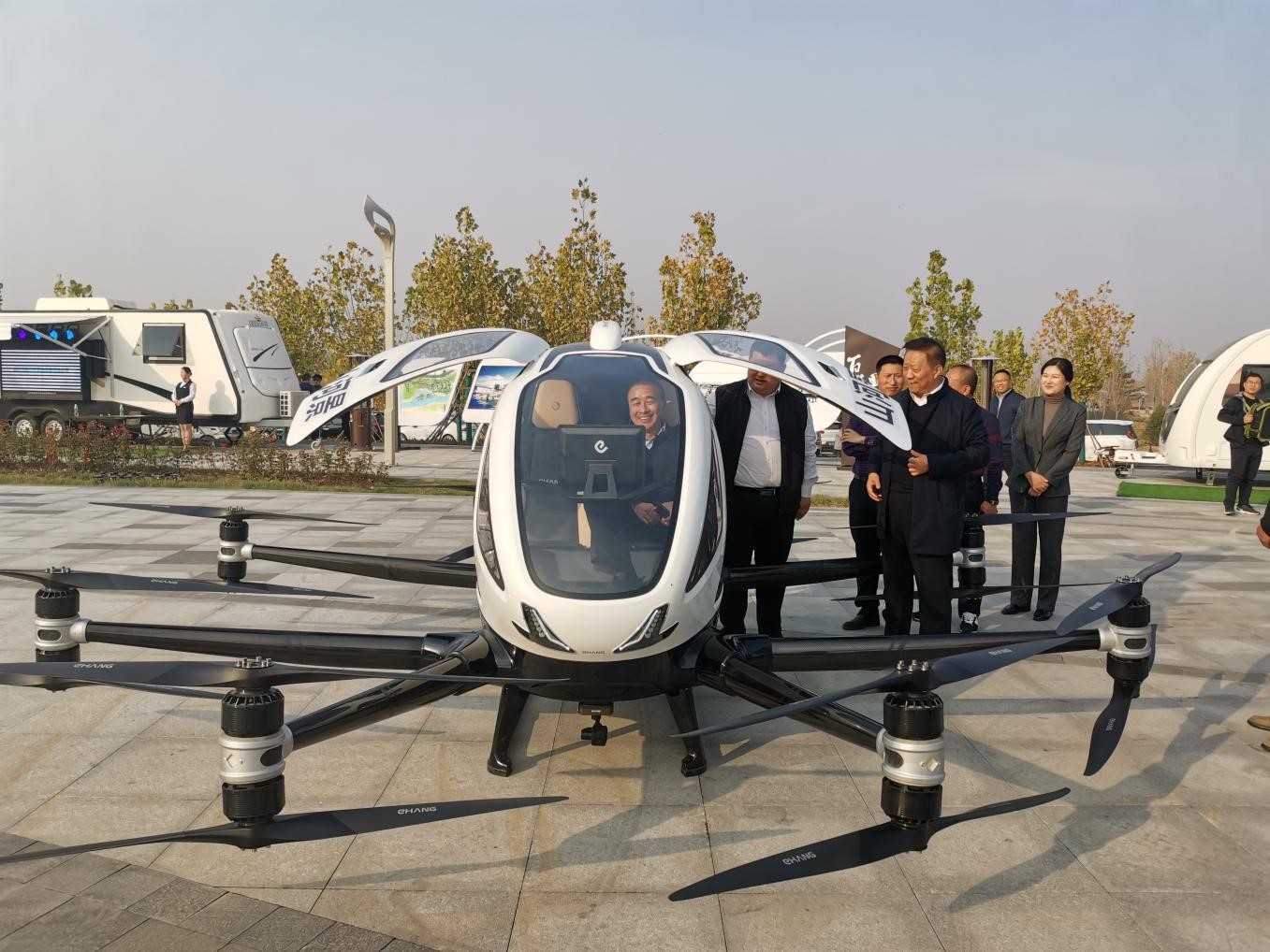 晉中市市委書記趙建平及市、區(qū)、縣等領導,先后考察參觀了“瀟河國際露營地”展區(qū)的各個展點。首先,觀看了山河景公司載人無人機表演,并詳細詢問了解了載人無人機的各項參數(shù)及技術(shù)應用范圍及情況。隨后,考察組來到游艇碼頭親自體驗了游艇項目,在瀟河碧波上,兩岸風光盡收眼底。最后,考察組參觀了不同型號成品房車,并就房車區(qū)域的未來規(guī)劃、準備投入量及發(fā)展前景等問題進行了詳細了解。