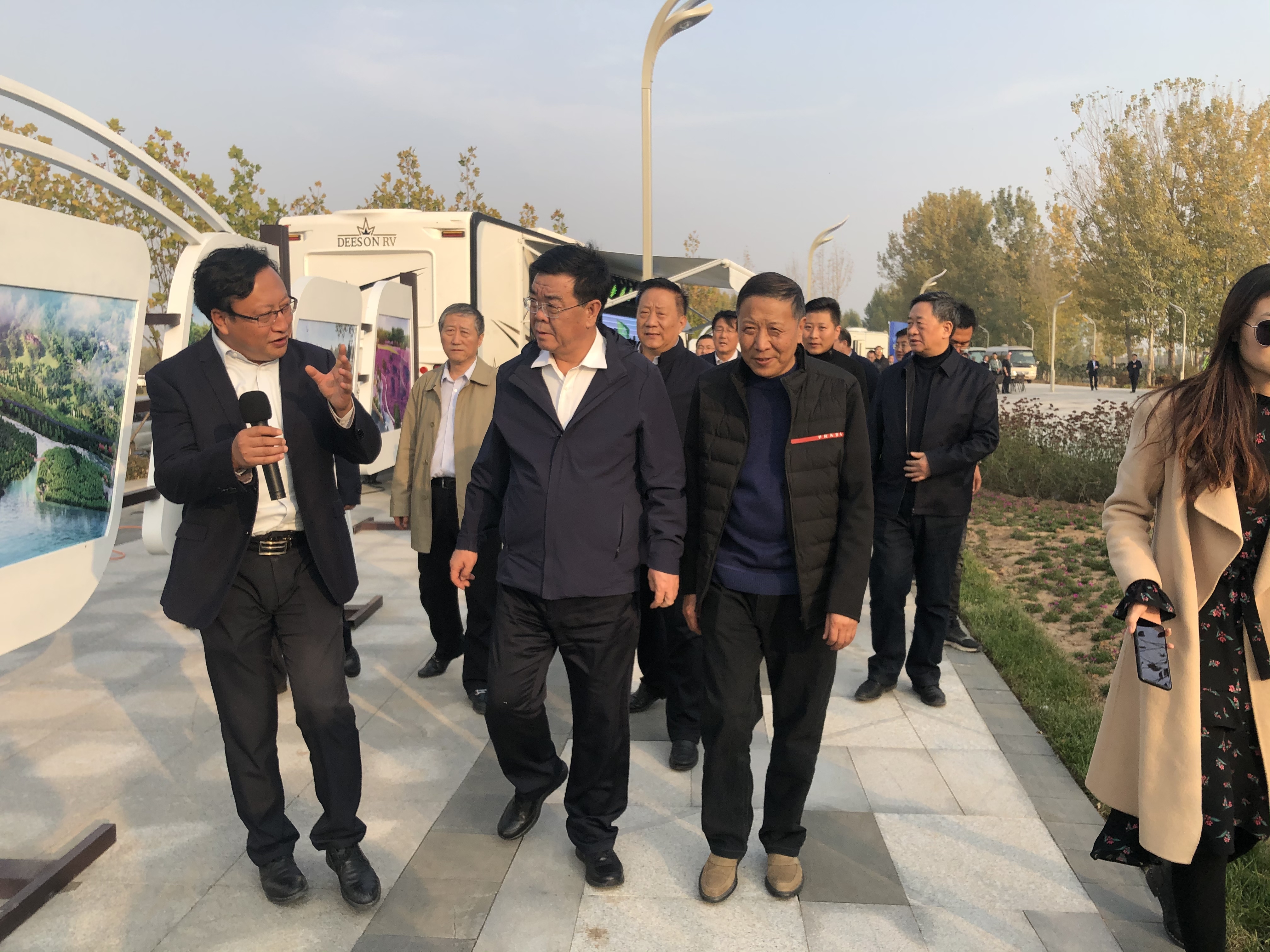 2020年10月26日下午,晉中市市委書記趙建平及市、區(qū)、縣等領導一行100余人蒞臨“瀟河國際露營地”展區(qū)進行實地考察調(diào)研。山西中維控股集團有限責任公司董事長郭秀忠、山西佳新房車營地投資有限公司董事長劉金柱等相關(guān)人員全程陪同,并針對項目概況及未來發(fā)展前景及意義進行了簡單的解說和匯報。